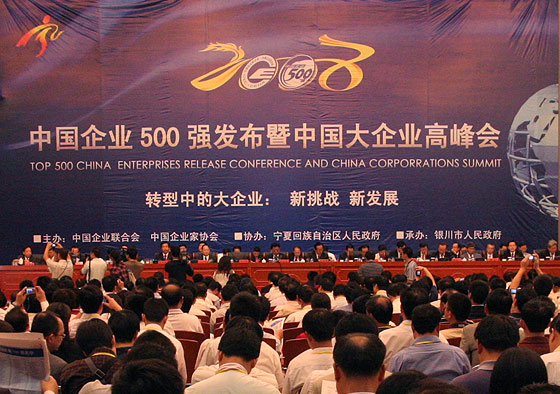 2008年8月30日,由中國企業(yè)聯(lián)合會、中國企業(yè)家協(xié)會主辦、寧夏回族自治區(qū)人民政府協(xié)辦、銀川市人民政府承辦的2008中國企業(yè)500強發(fā)布暨中國大企業(yè)高峰會在銀川市舉行。本次論壇的主題是轉型中的大企業(yè):新挑戰(zhàn)、新發(fā)展。