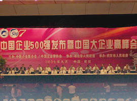 2007中國(guó)企業(yè)500強(qiáng)在武漢發(fā)布2007年9月1日上午,由中國(guó)企業(yè)聯(lián)合會(huì)、中國(guó)企業(yè)家協(xié)會(huì)主辦、湖北省人民政府協(xié)辦、武漢市人民政府承辦的2007中國(guó)企業(yè)500強(qiáng)發(fā)布暨中國(guó)大企業(yè)高峰會(huì)在湖北省省會(huì)武漢市召開(kāi)。本次論壇的主題是:全球視野,和諧發(fā)展。