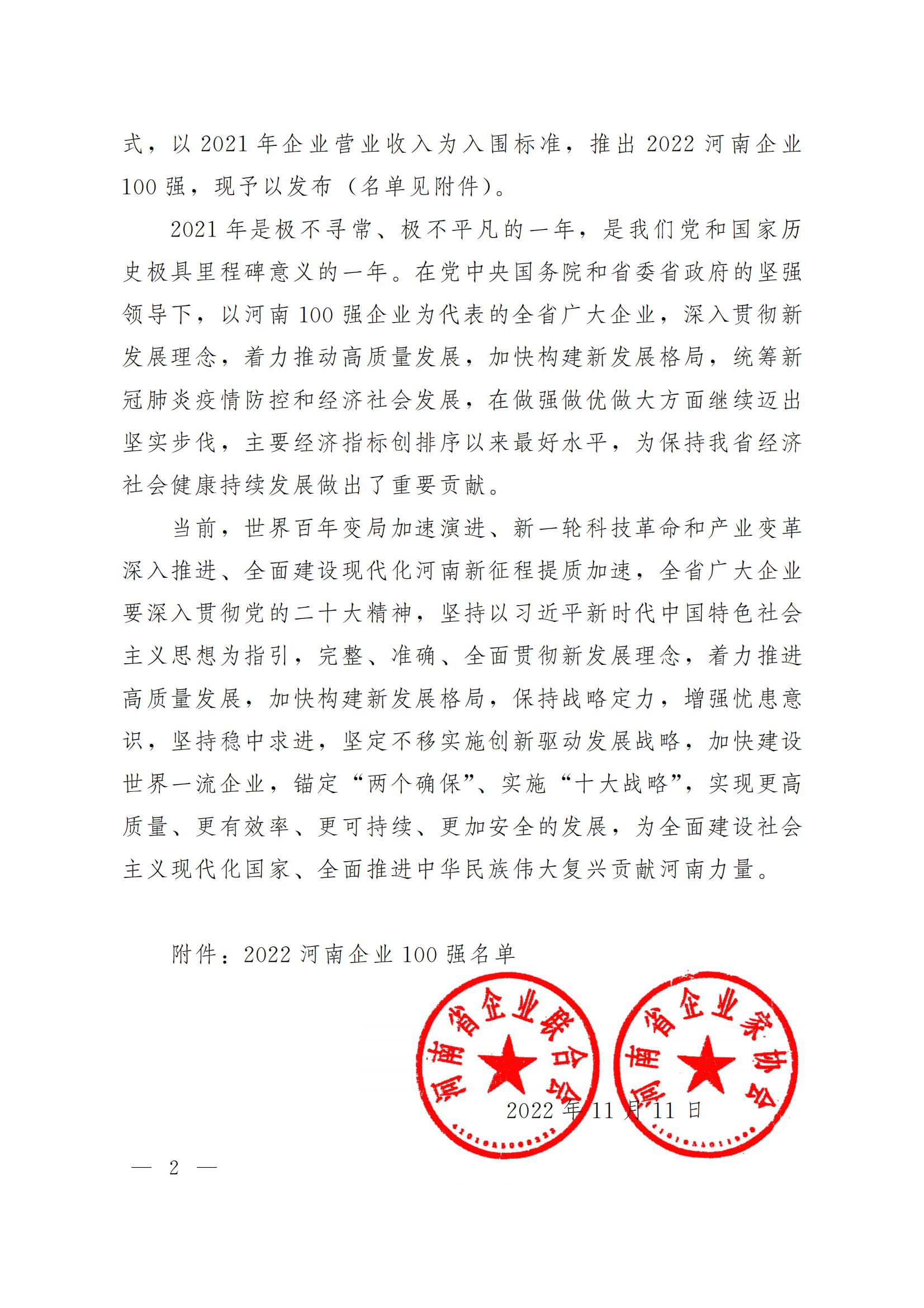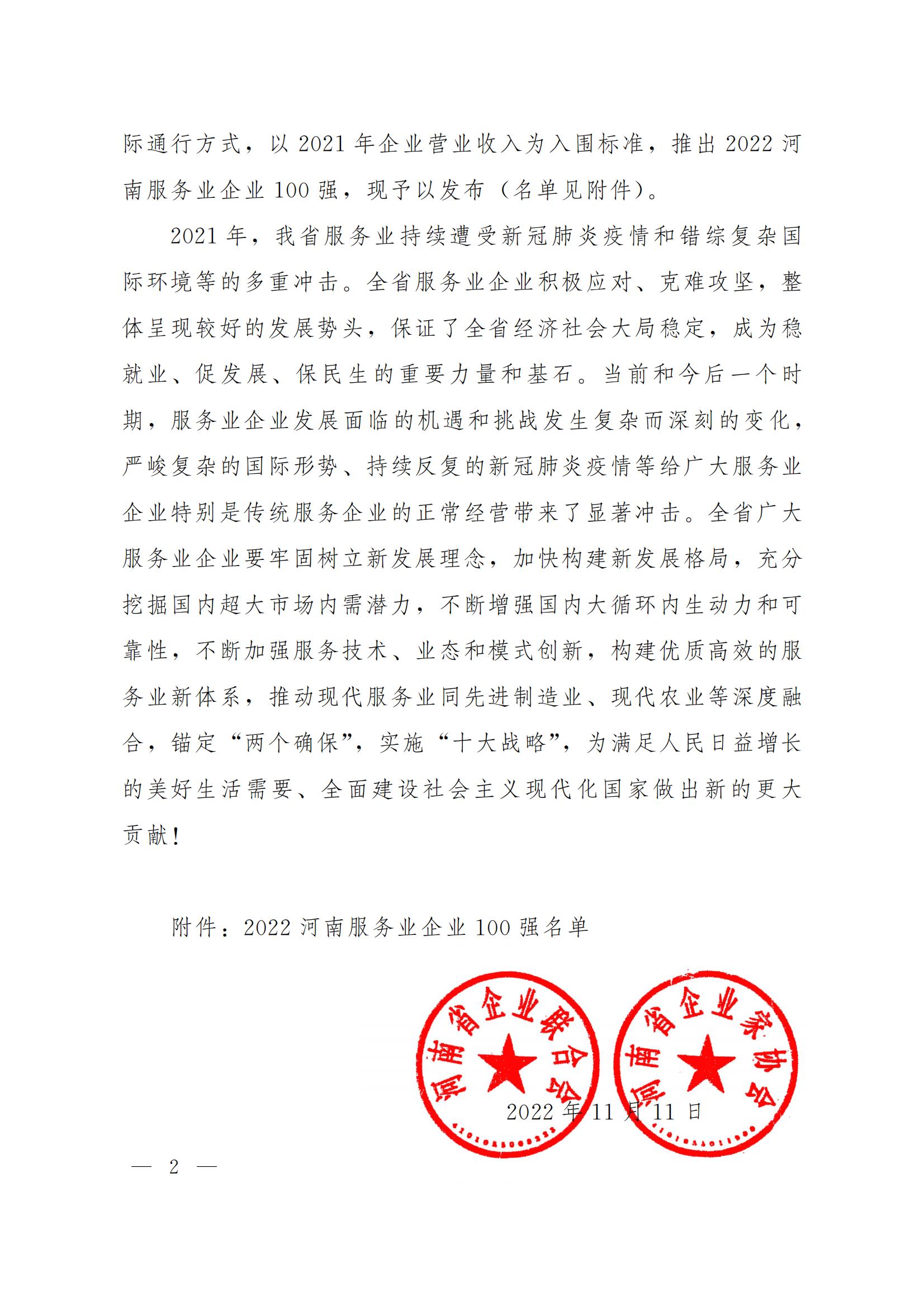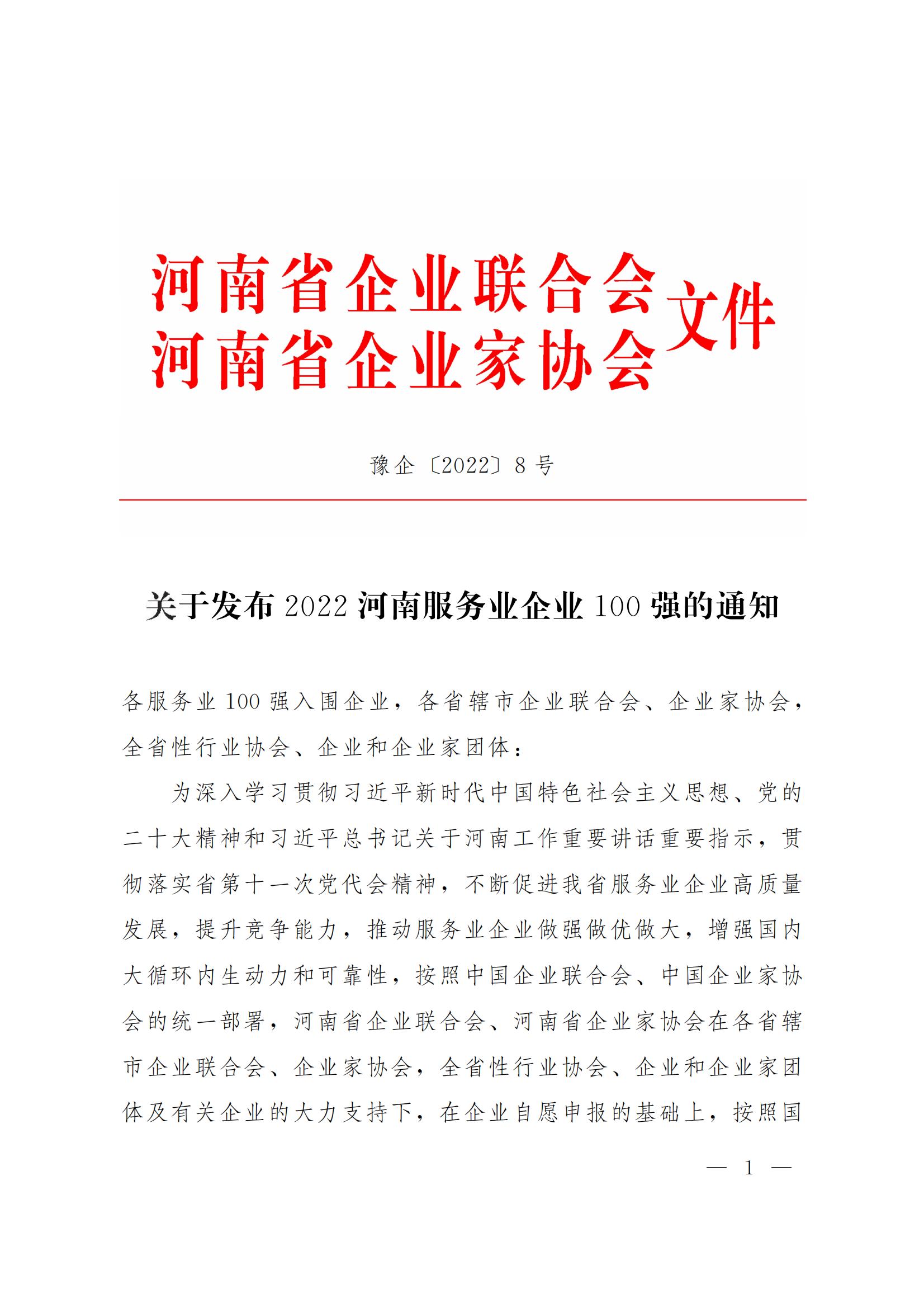 2022河南企業(yè)100強(qiáng)、2022河南制造業(yè)企業(yè)100強(qiáng)、2022河南服務(wù)業(yè)企業(yè)100強(qiáng)榜單