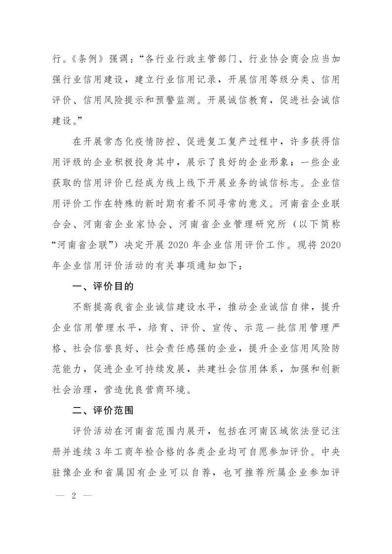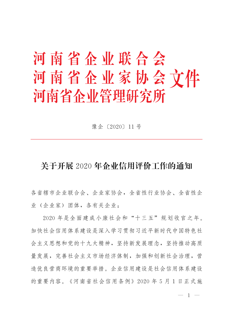 關于開展2020年企業信用評價工作的通知