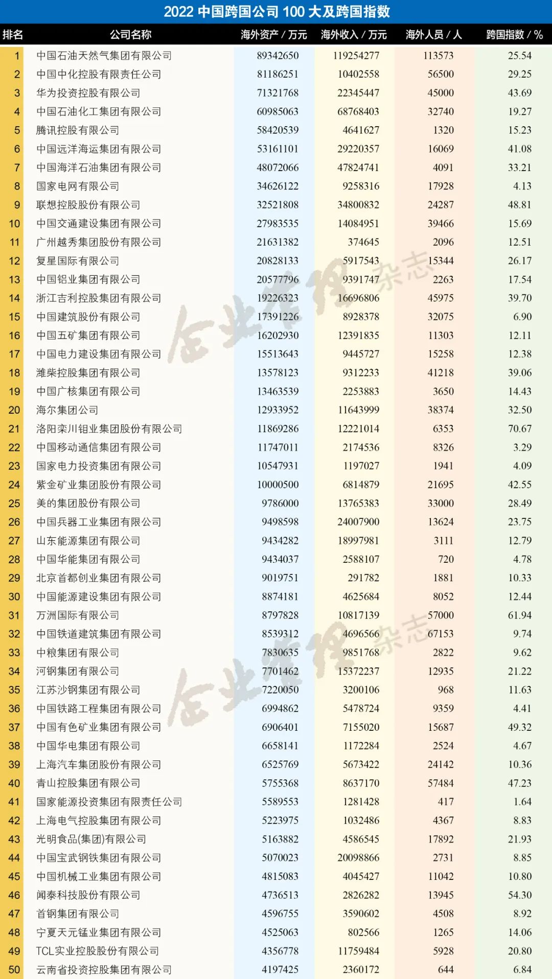 2022中國跨國公司100大及跨國指數(shù)