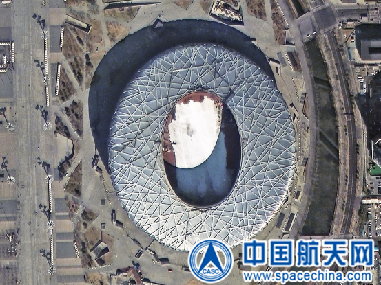 圖為高景一號衛星拍攝的北京鳥巢體育場影像