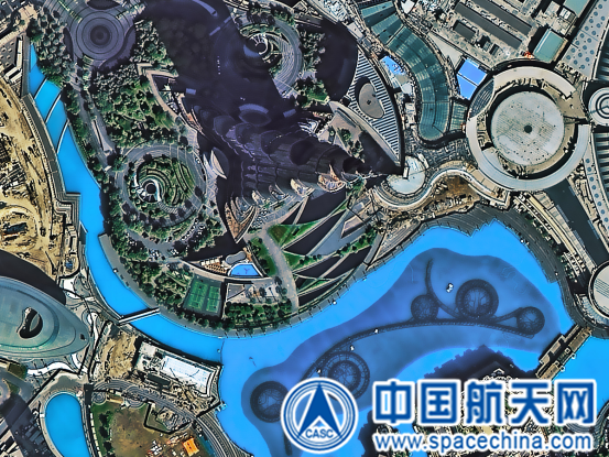 圖為高景一號衛星拍攝的世界第一高樓迪拜哈利法塔影像